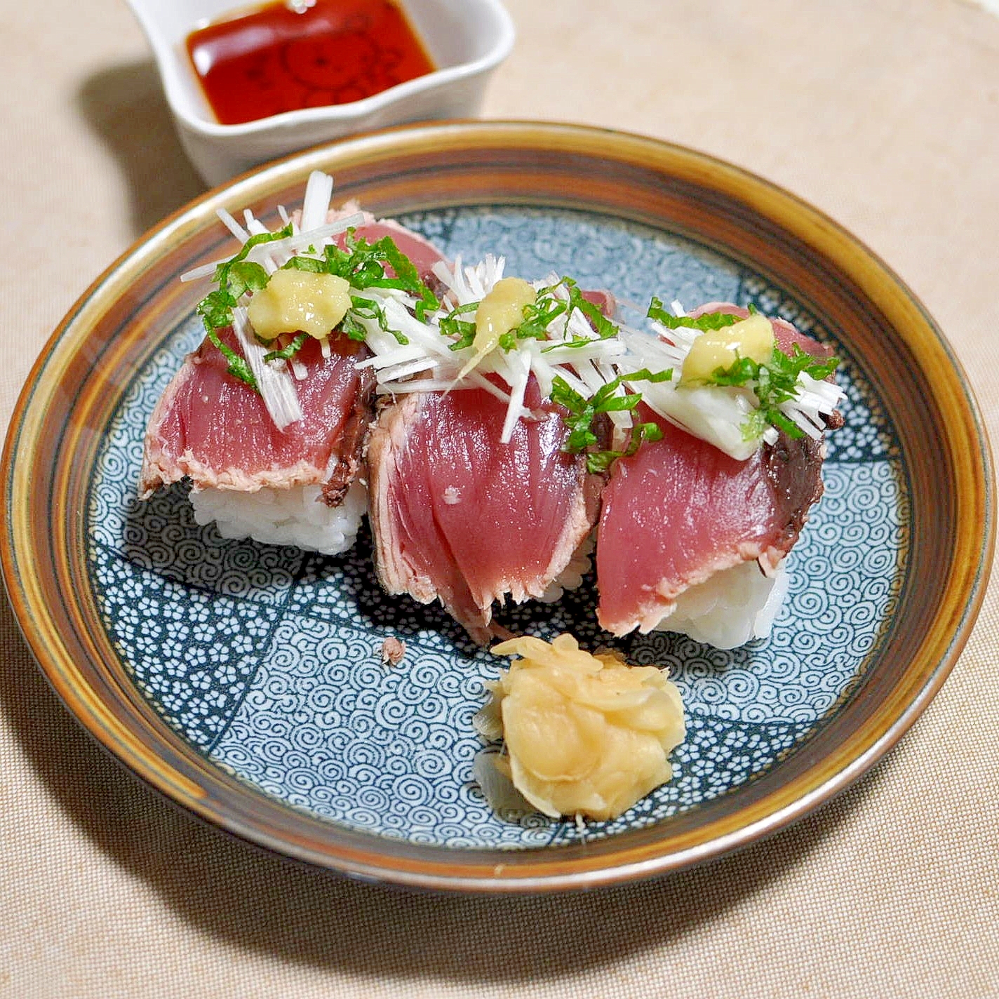 かつおのたたきの握り寿司 レシピ 作り方 By Taka5chan 楽天レシピ